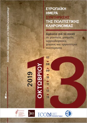 Φέτος, θα εορταστεί και πάλι η Ευρωπαϊκή Ημέρα Συντήρησης. Η κεντρική ημερομηνία των εορτασμών είναι η Κυριακή, 13 Οκτωβρίου 2019, ενώ εκδηλώσεις μπορούν να πραγματοποιηθούν και εντός του διαστήματος 7-13 Οκτωβρίου 2019. Στόχος είναι να αναδειχθεί η συμβολή της συντήρησης στη διαφύλαξη της πολιτιστικής κληρονομιάς και να γνωρίσει το ευρύ κοινό την αθέατη πλευρά του επαγγέλματος του συντηρητή. Οι προσκεκλημένοι φορείς μπορούν να συμμετάσχουν με ανοικτές προς το ευρύ κοινό εκδηλώσεις, που αφορούν τη συντήρηση της πολιτιστικής κληρονομιάς. Οι εκδηλώσεις μπορούν να περιλαμβάνουν οργανωμένες επισκέψεις σε εργαστήρια ή εργοτάξια, διαλέξεις, θεματικές ξεναγήσεις, εκπαιδευτικά προγράμματα για παιδιά και ενήλικες κ.ά.