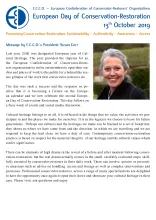 Στο πλαίσιο του Ευρωπαϊκού έτους Πολιτιστικής Κληρονομιάς γιορτάζεται φέτος για πρώτη φορά η Ευρωπαϊκή Ημέρα Συντήρησης. Ο ΣΣΑΕΤΤΕ σε συνεργασιά με τη ΔΣΑΝΜ και το Ελληνικό Τμήμα του ICOM σας προσκαλούν να γιορτάσετε μαζί μας !!!
